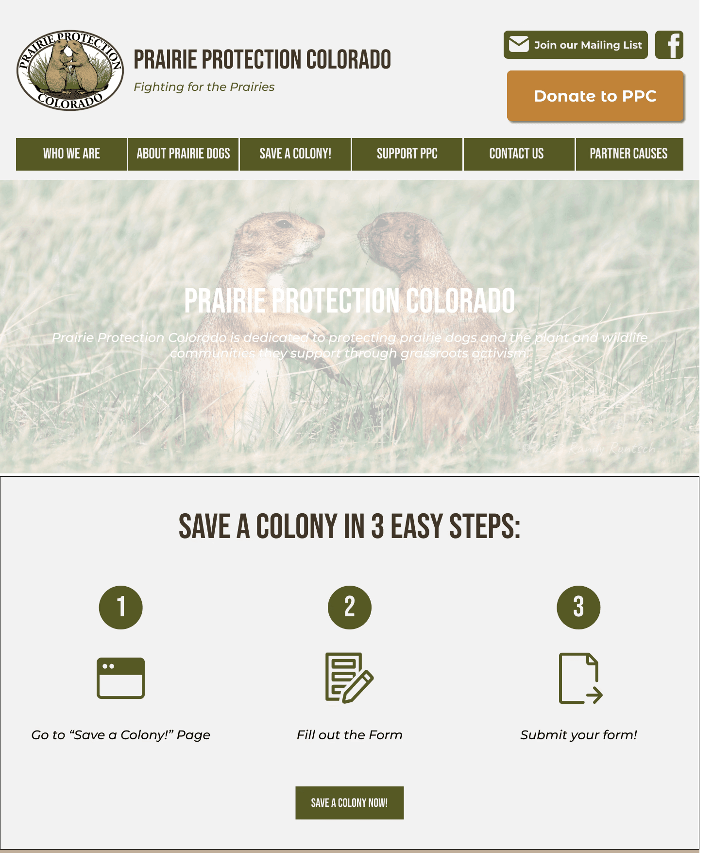 Because this was a multifaceted website, the re-design was centralized around users saving a prairie colony near their home.