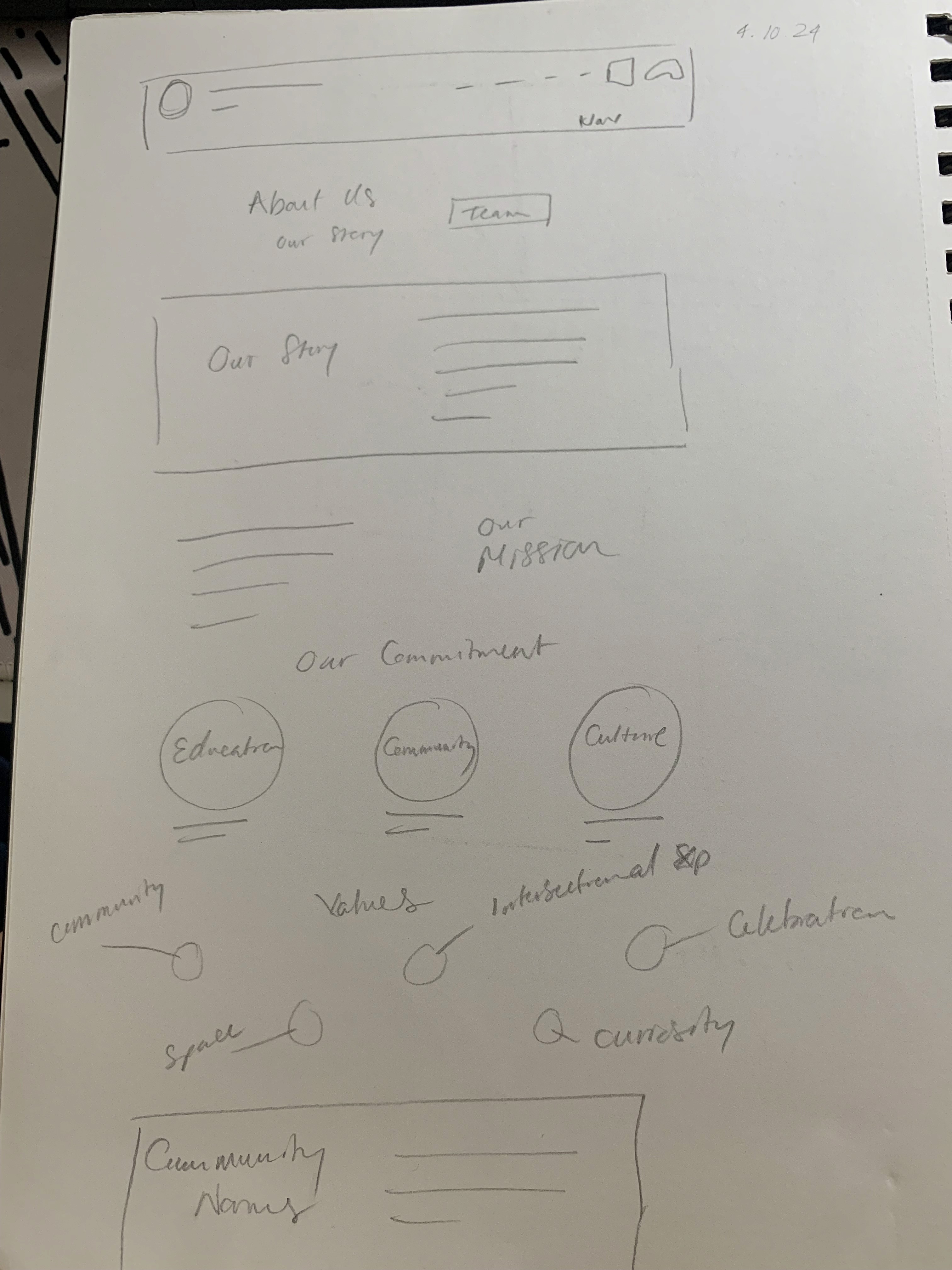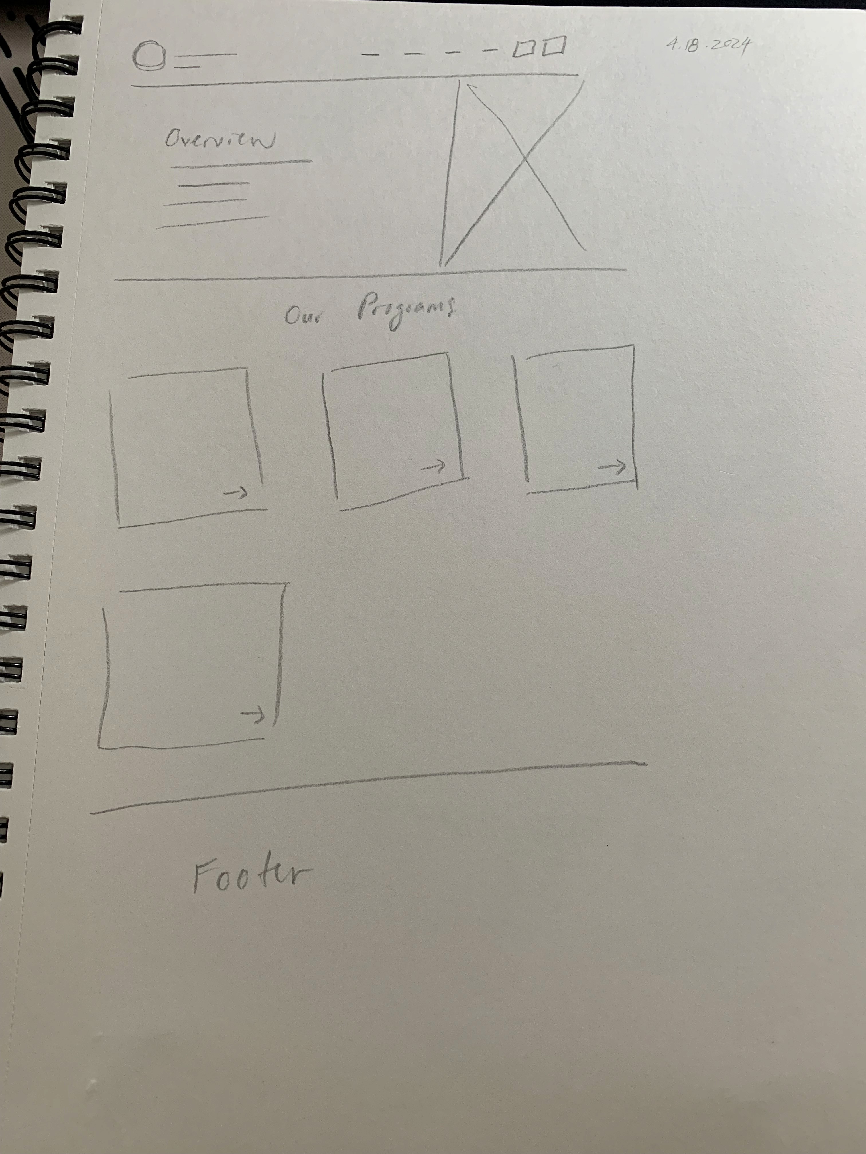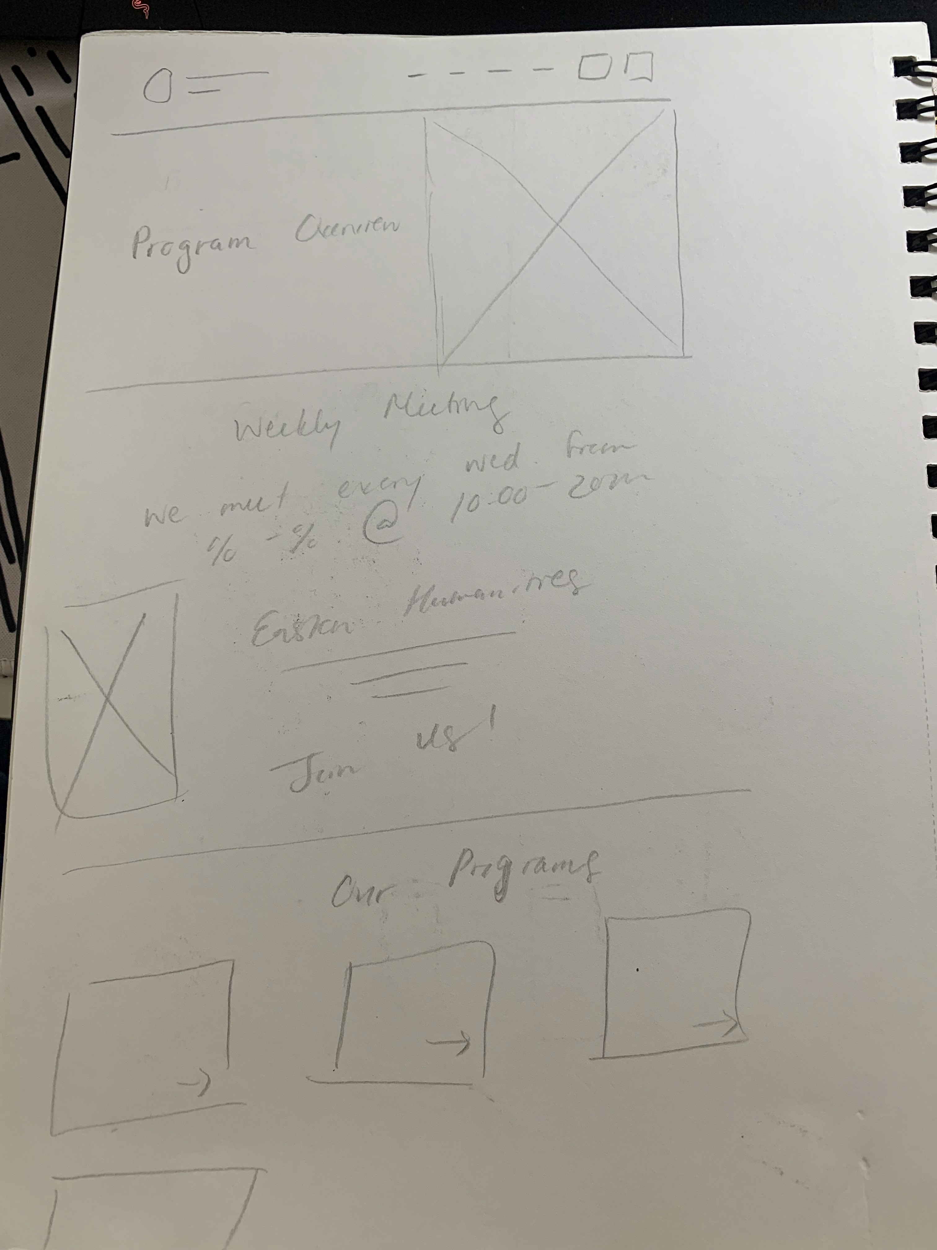 I then started creating low-fidelity wireframes for the website. This included experimenting with different varieties of cards and what would and wouldn't benefit the goals of the website, laying out the format of certain pages in a way that helps students know how to join the organization, and reorganizing the home page so that users are aware of the program offerings.
