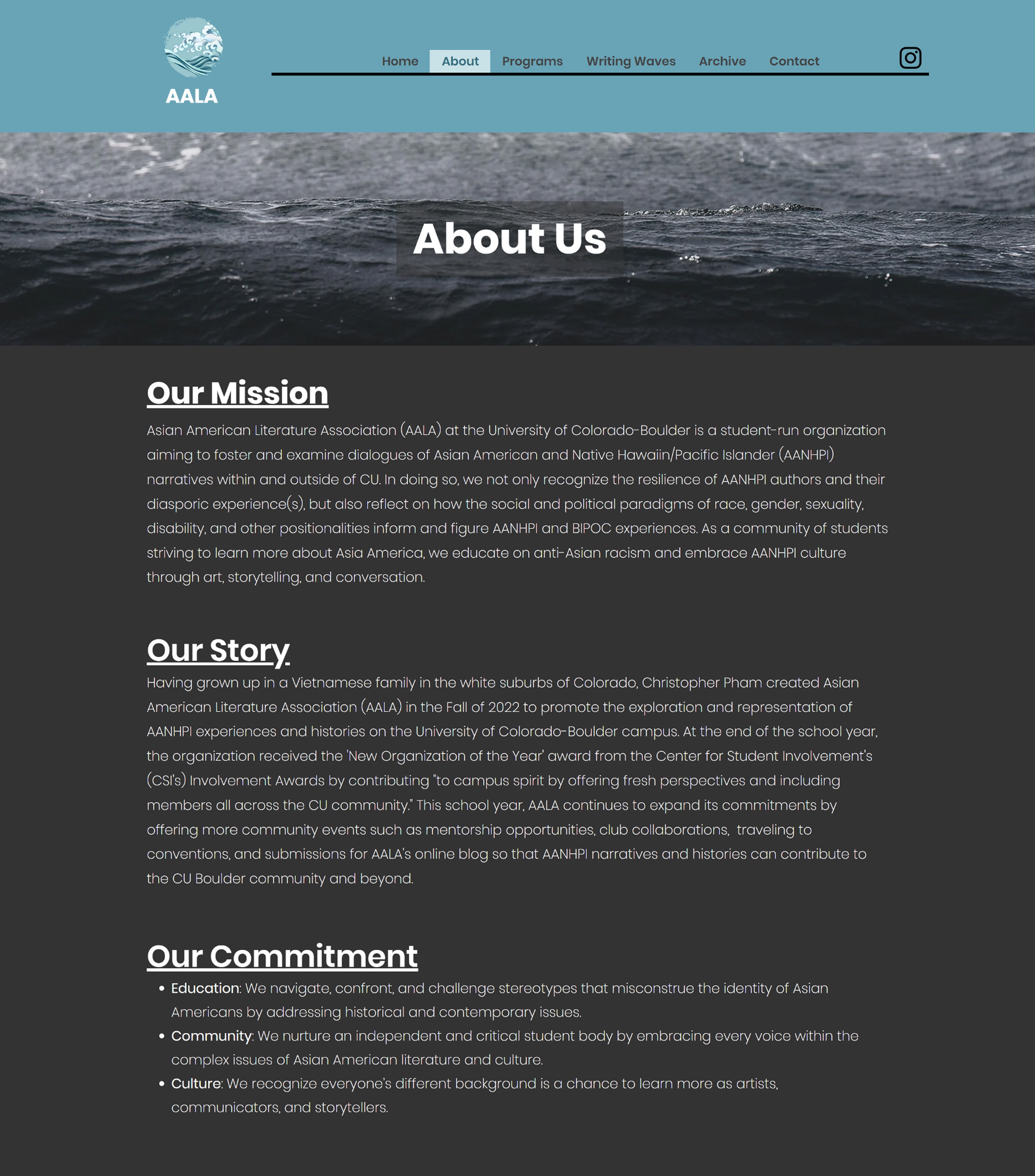 Improve AALA's website into a modern, user-friendly experience for connection and discovery amongst undergraduate students at CU Boulder.