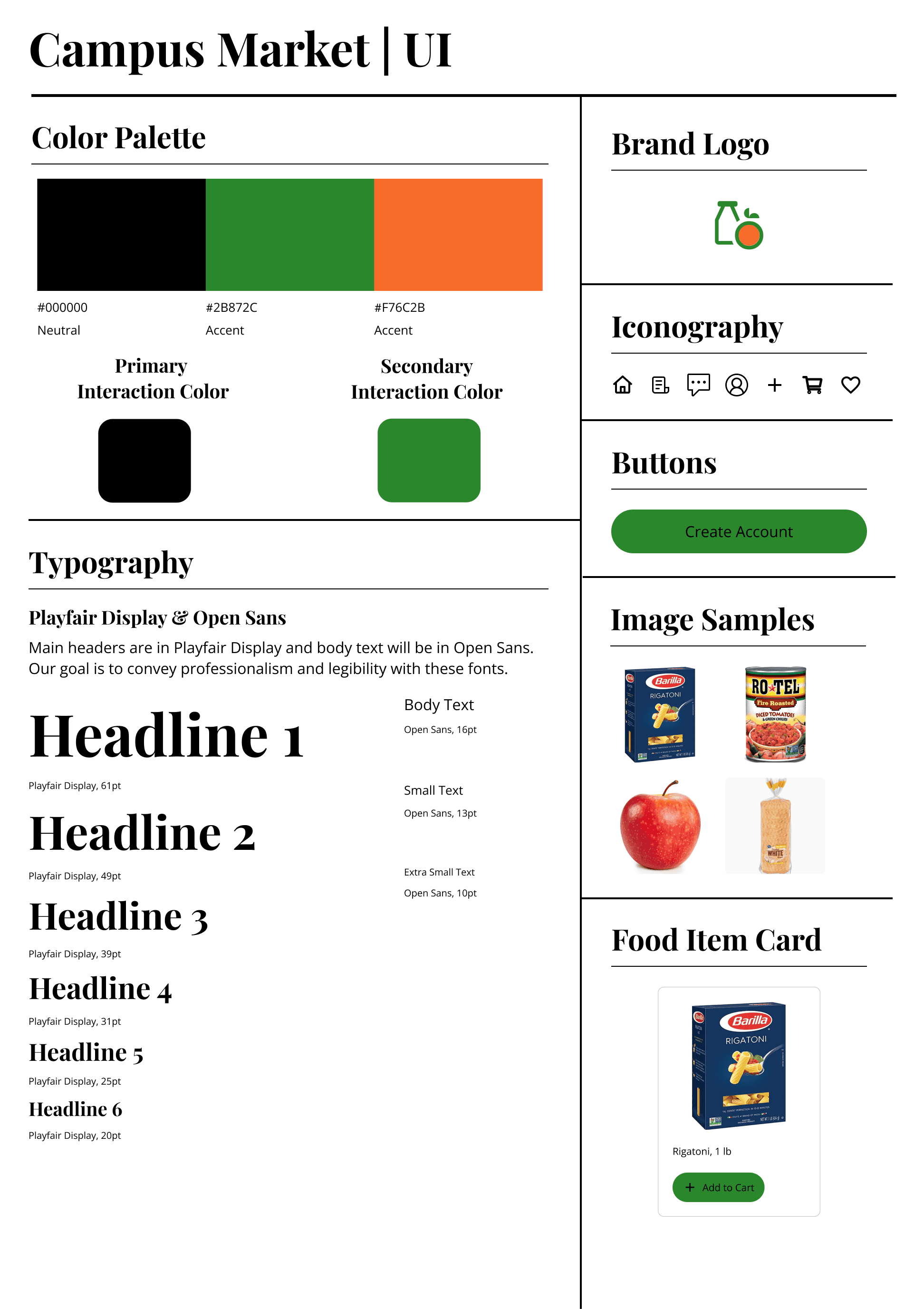 For the logo design, I wanted it to feel more like a fresh food shopping experience than a cafeteria. I chose green and orange to evoke health, freshness, and approachability. Even though campus pantries don't always off the healthiest items, the goal was to create a visual identity that says, "There's good food here—come check it out."